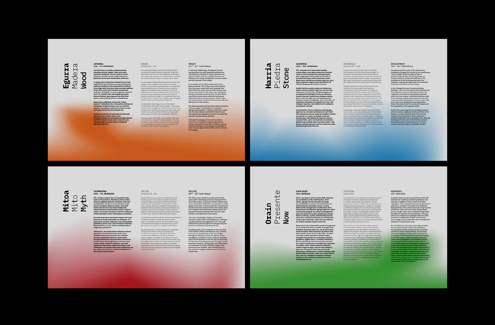 Proyecto de diseño gráfico expositivo para Baserria, exposición inaugurada en el @eai_iae_ (Instituto Vasco de Arquitectura). La muestra propone una reflexión sobre el caserío vasco como una arquitectura que ha sabido adaptarse, transformarse y perdurar a lo largo de los siglos, respondiendo a las distintas realidades económicas, sociales y culturales del País Vasco. A través de planos, maquetas, fotografías y materiales documentales, la exposición revela cómo el caserío ha evolucionado hasta convertirse en símbolo identitario y elemento central del paisaje rural vasco. El trabajo de gráfica expositiva se centró en acompañar el discurso curatorial mediante una identidad visual sobria y contemporánea, que dialoga con la arquitectura del espacio y refuerza la lectura del contenido expositivo sin restarle protagonismo.